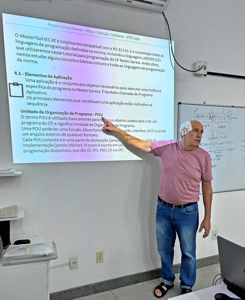 Mesmo sem saber o que era um CLP antes do curso, Filipe descreveu a interação com o XP340 da Altus como “maravilhosa”. A facilidade de aprendizado, proporcionada por uma didática que equilibra 50% de teoria e 50% de prática, permitiu que ele dominasse a lógica de programação de forma intuitiva.